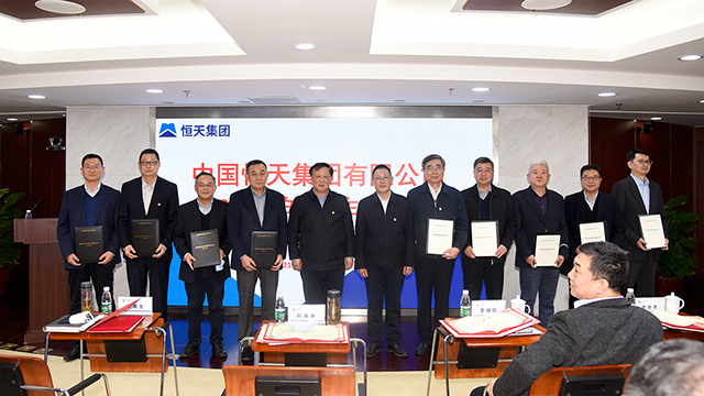 劉海濤代表恒天集團董事會與集團經營層簽訂《2021年度經營業績考核責任書》,顏甫全向14家直管企業代表頒發《2021年度經營業績考核責任書》。